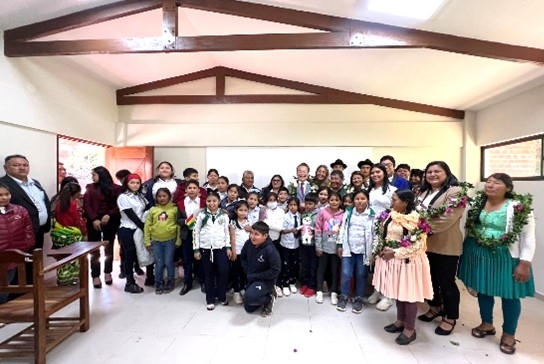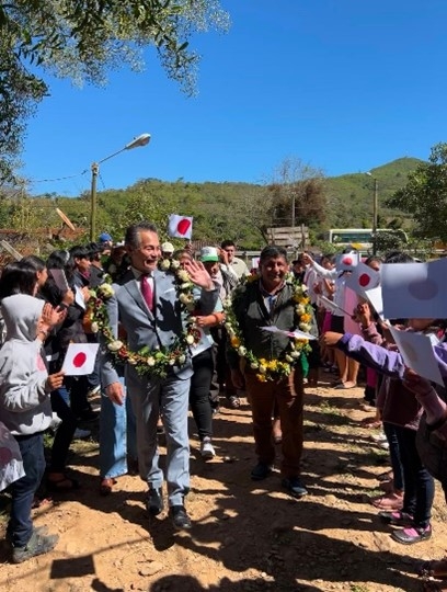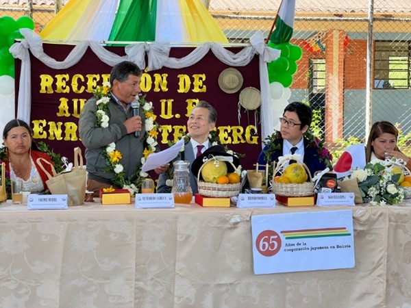 8月11日、小野村拓志大使は、日本政府の草の根・人間の安全保障無償資金協力を通じてサンタクルス県サマイパタ市エンリケ・ステムベルグ教育施設に供与した校舎(4教室)の引渡式にエウスタキオ・カシージャ サマイパタ市長等とともに出席しました(供与額:57,386米ドル)。