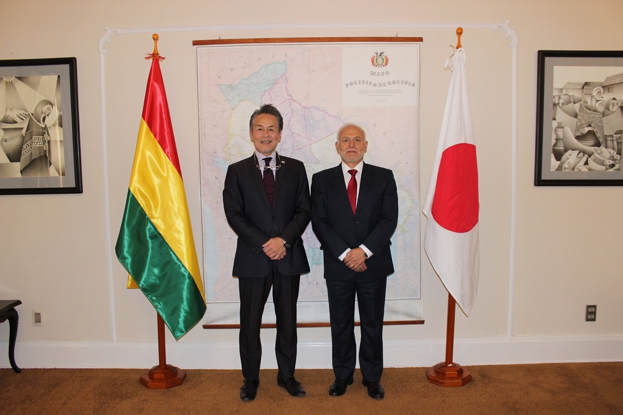 8月15日、小野村大使は新たに着任されたハイメ・バルベリス・マルティネス エクアドル大使による表敬訪問を受け、ボリビアの政治・経済状況について意見交換を行いました。ハイメ・バルベリス・マルティネス大使は、駐日エクアドル大使も務められ、日本の各種技術に高い関心をお持ちになっています。また、エクアドルにおける日本の地熱発電協力プロジェクトへの謝辞がありました。エクアドルと日本の各種協力関係の経験を踏まえ、ボリビアにおける両国の協力を約束しました。