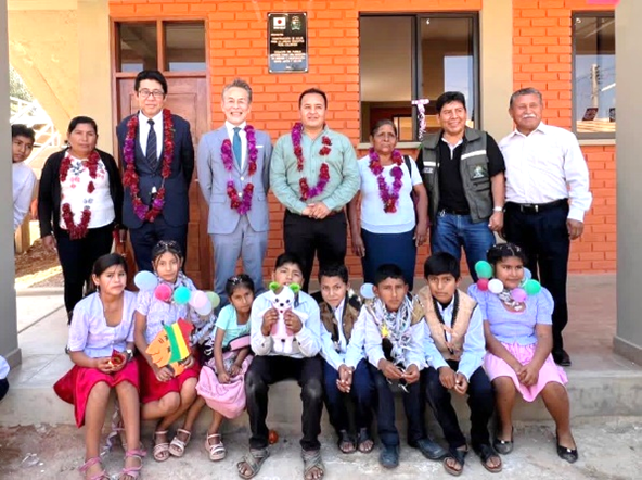 El 12 de septiembre, el embajador Hiroshi Onomura junto al alcalde Darwin Vera, y otras autoridades, participaron de la ceremonia de entrega de un bloque de cuatro aulas a la unidad educativa « Peña Colorada» del municipio de Omereque, en el departamento de Cochabamba, financiado a través del esquema de cooperación denominado Asistencia financiera no reembolsable para proyectos comunitarios de seguridad humana (APC) del Gobierno del Japón (subvención: USD 58 282).