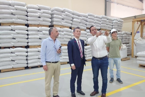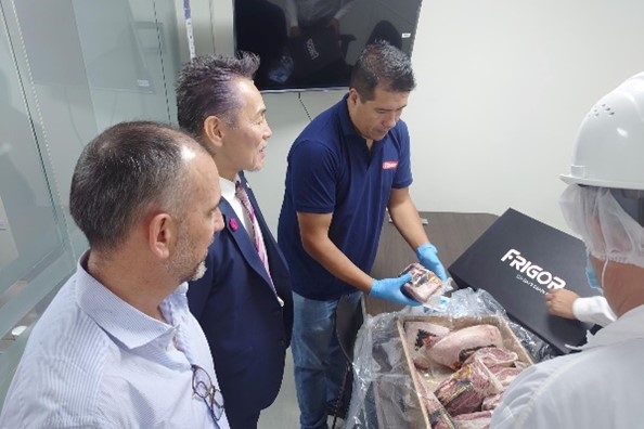 9月23日、小野村大使夫妻はサンタクルス市の工業団地のFRIGOR社を視察訪問しました。同社は牛肉処理を行い、中国・南米諸国に輸出を行っています。各市場のニーズを調査し、消費者の嗜好に合わせた肉質改善にも取り組んでいます。また、HACCPなど世界基準の衛生審査をクリアし、品質管理に細心の注意を払っていました。