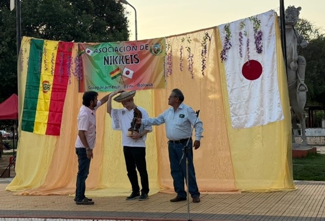 同お祭りでは、グアヤラメリン市在住および近隣市在住の日系人による歴史や日本食、工芸品の紹介に加え、学生等による日本とボリビア文化を融合させた踊りなどが披露されました。