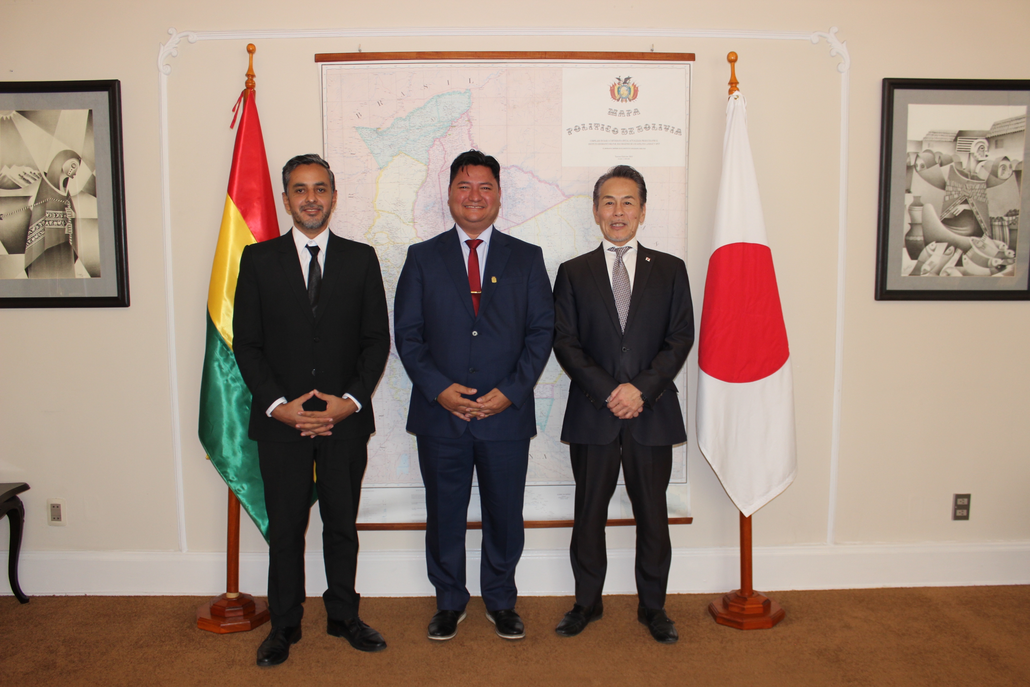 ローランド・コバヤシ下院議員による小野村大使表敬訪問 令和7年11月21日 11月21日、小野村大使はローランド・コバヤシ下院議員による表敬訪問を受けました。小野村大使からは、両国間の良好な関係のさらなる強化と日系人社会への敬意、さらに経済関係強化に関する議会への期待を述べました。コバヤシ下院議員からは、日系人議員として日本との関係強化に最大限尽力したい旨表明がありました。