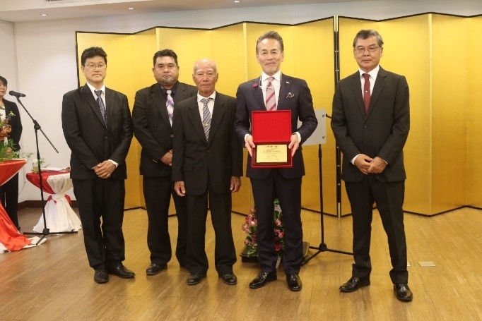 Asimismo, miembros de la comunidad nikkei en Bolivia entregaron al Embajador Onomura una placa de reconocimiento por sus contribuciones a la comunidad.