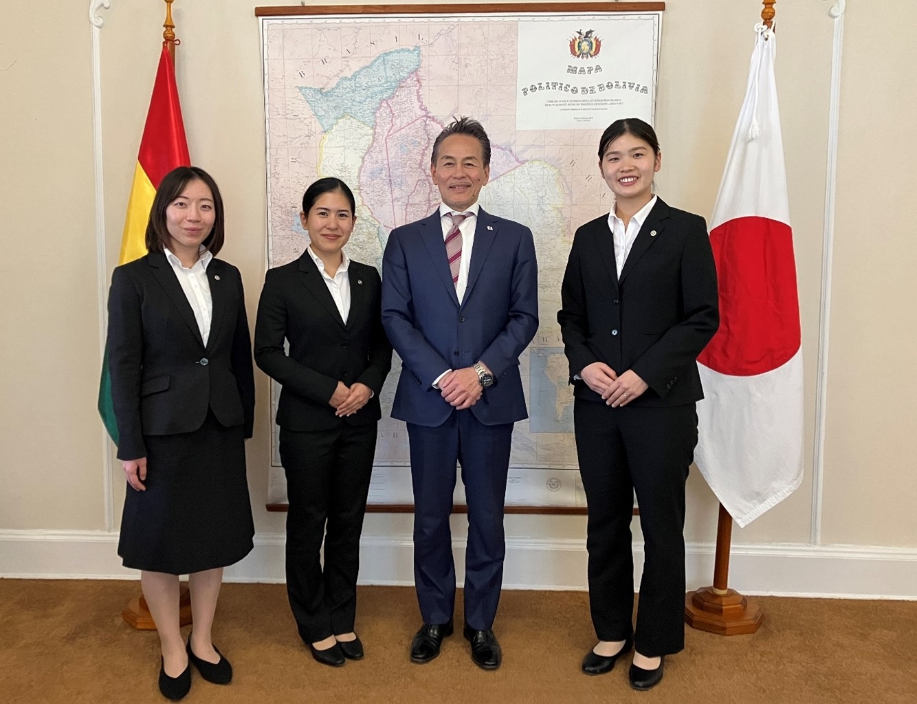 El 22 de diciembre, tres voluntarios de JICA, quienes asumieron sus cargos el 17 de diciembre, visitaron la embajada para saludar e informar del inicio de sus actividades.