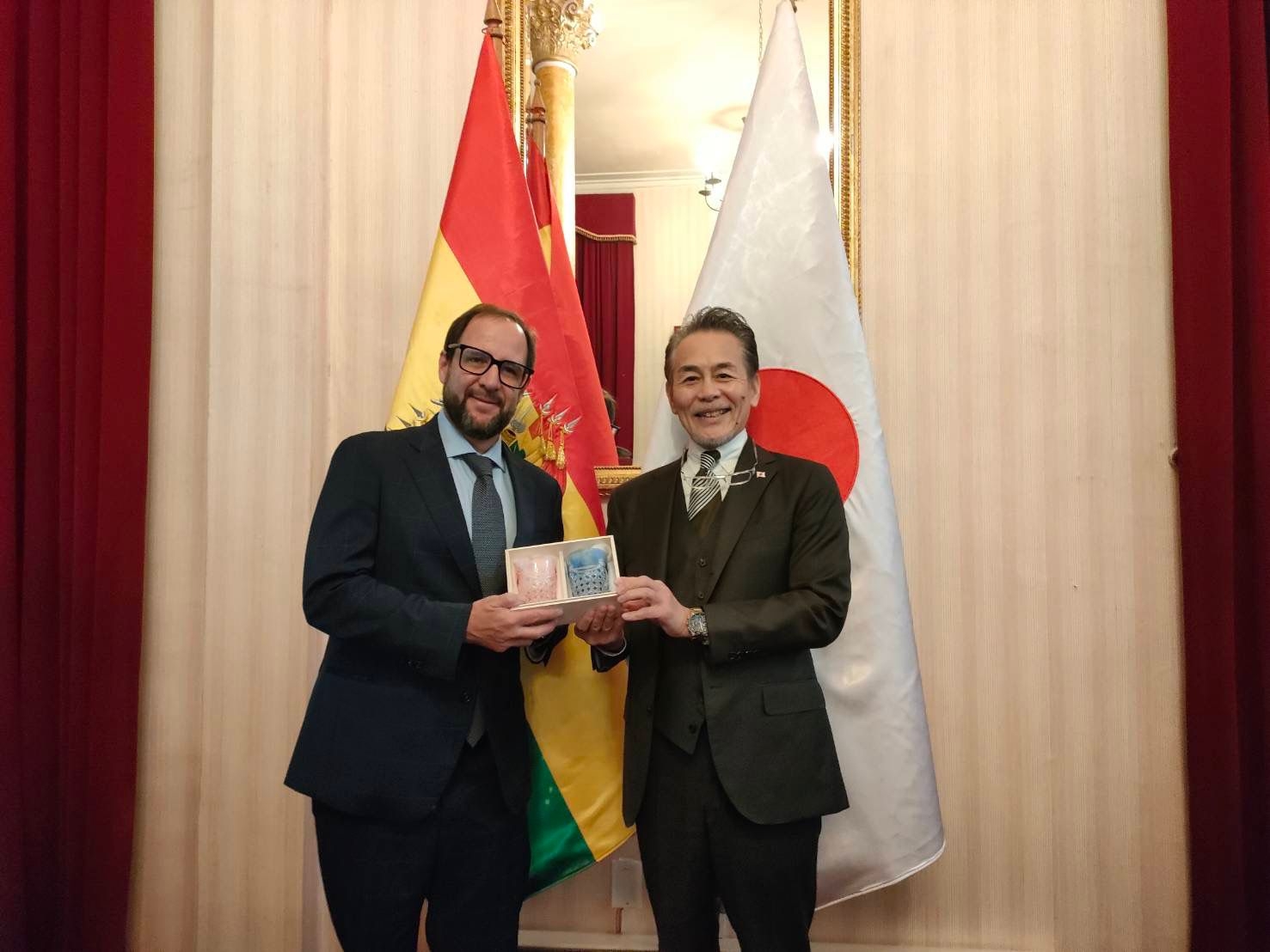 12月1日、小野村大使はロドリゴ・アルセ外務省通商・統合担当外務次官を表敬訪問し、ボリビア産食品・酒類・農産品の対日輸出の促進、日本産酒類の対ボリビア輸出の促進を含む、日・ボリビア二国間における経済・通商関係の可能性について意見交換を実施しました。
