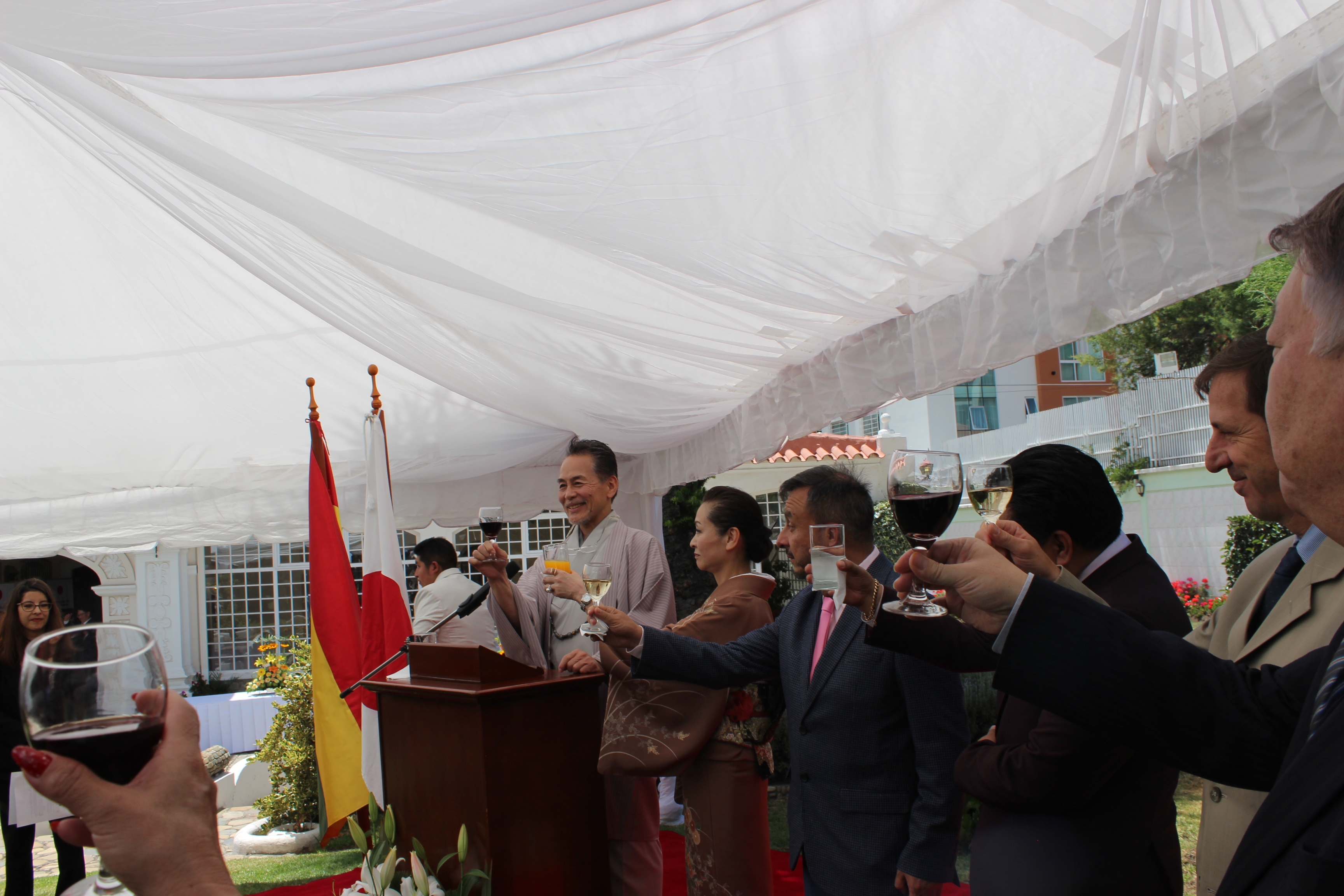12月19日、日本大使公邸において小野村大使及び同夫人の離任セレプションが開催され、セルヒオ・メディナセリ炭化水素・エネルー大臣、カルロス・パス外務次官、カレル・リベロ生産・農村・水資源開発省農業・総合開発次官、グスタボ・ハウレギ生産開発省国内通商・物流担当次官他、ボリビア中央政府、日本企業、日系団体、外交団関係者など約100名が出席しました。