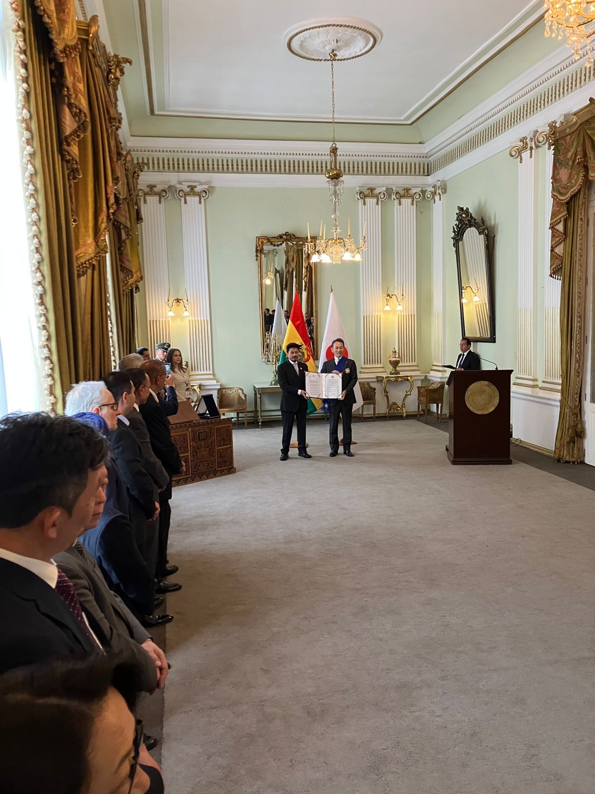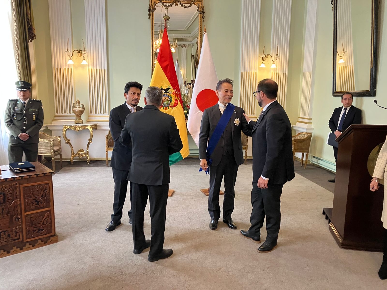 Condecoración por parte del Gobierno boliviano al embajador Onomura