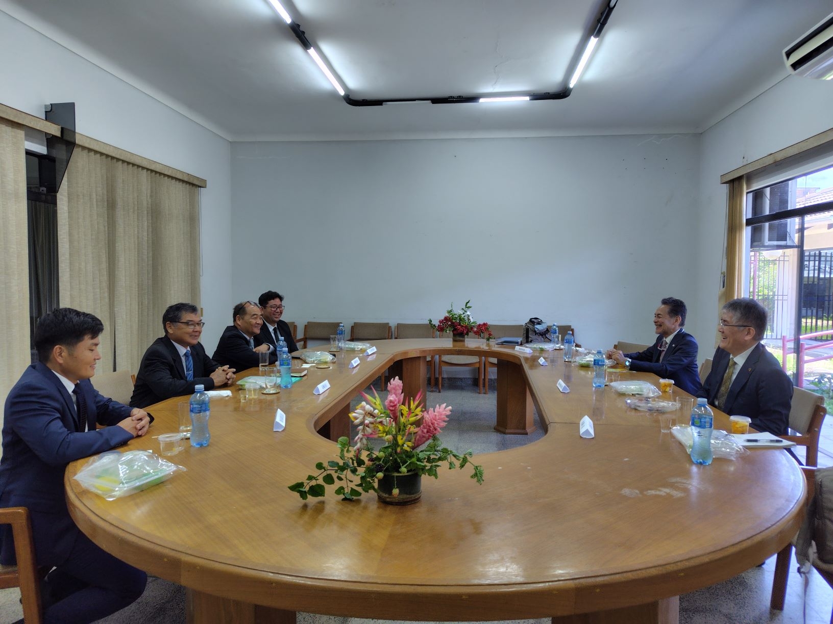 石瀬中南米局長との日系移住地視察 令和7年12月17日 12月17日、小野村大使はボリビア出張中の石瀬外務省中南米局長とともにサンファン移住地及びオキナワ移住地を訪問、両移住地の日系団体関係者と移住地の現状や今後の方向性などについて意見交換を行うとともに、サンファン移住地ではコメの収穫の様子や養鶏場などを視察されました。