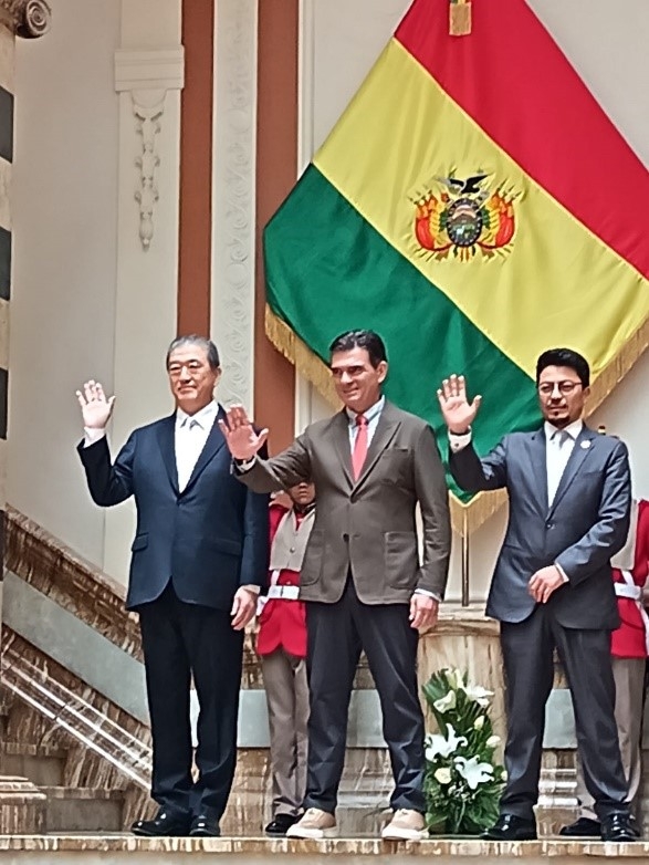 El 9 de febrero, el embajador Orihara presentó sus cartas credenciales al señor presidente Rodrigo Paz Pereira en el Salón de Espejo del Palacio Quemado.