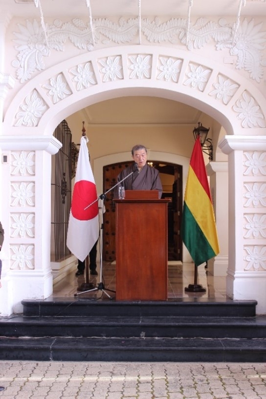 2月19日、在ボリビア日本大使館は、日本大使公邸において令和7年度天皇誕生日祝賀レセプションを開催し、フェルナンド・アラマヨ外相、マルセラ・フローレス保健大臣他ボリビア政府、地方自治体、企業、日系団体、外交団の関係者等約350名の出席を得ました。