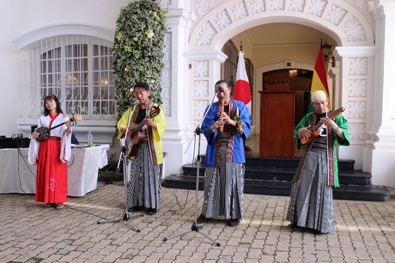 開会式典においては、ボリビアで活動する日本人音楽家グループ“ワイラハポナンデス”により松任谷由実の「春よ来い」、アニメドラゴンボールの「摩訶不思議アドベンチャー」が披露されたほか、会場では大使館料理人による日本食の提供、日本酒の試飲、ボリビア企業及び日本企業による商品・サービスの紹介、JICAによる事業紹介などが行われました。
